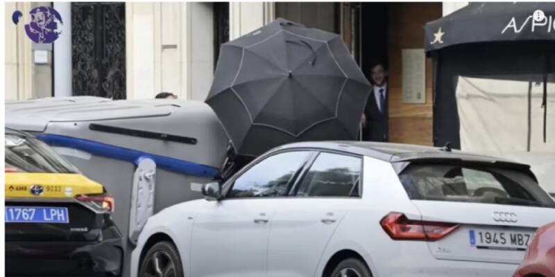 Ya que la actitud que se puede ver en el video es muy sospechosa, Gerard Piqué y Clara Chía bajan de un automóvil negro, primero se baja el exfutbolista, él cual tapa la cara y rostro de la joven con un gran paraguas, a pesar de que no era necesario ya que no llovía.