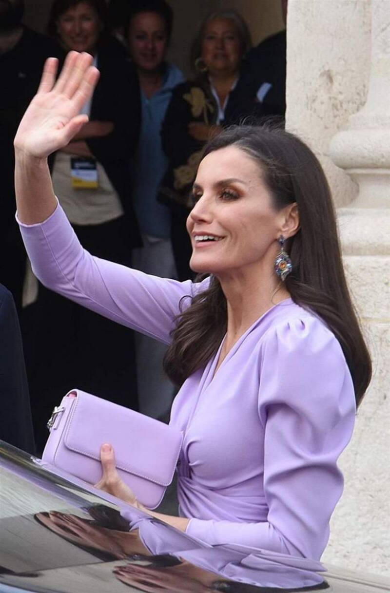En su visita a Cádiz, Letizia causó sensación en sus dos apariciones públicas por su participación con las palmas y el cajón flamenco, pero también por su elección de prendas, pues acaparó todas las miradas con un elegante vestido de color lila de la firma española Cho Atelier. Además de su atuendo, la esposa del rey Felipe usó un mini bolso con el que completó su outfit.