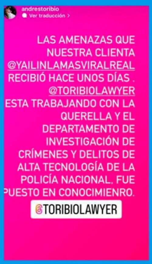 Fue a través de redes sociales donde Andrés Toribio, representante legal de Yailin La Más Viral, explicó que las amenazas a su cliente provienen de una mujer identificada como “La Lominera”, quien en un video de TikTok atacó a la ex esposa de Anuel AA por, presuntamente, deberle dinero.