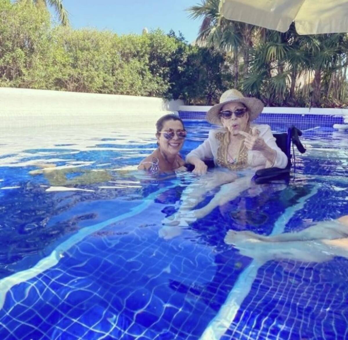 A través de redes sociales, la intérprete compartió una serie de imágenes donde se puede apreciar este momento al lado de la Diva del Cine Mexicano, quien está sentada en una silla de ruedas.