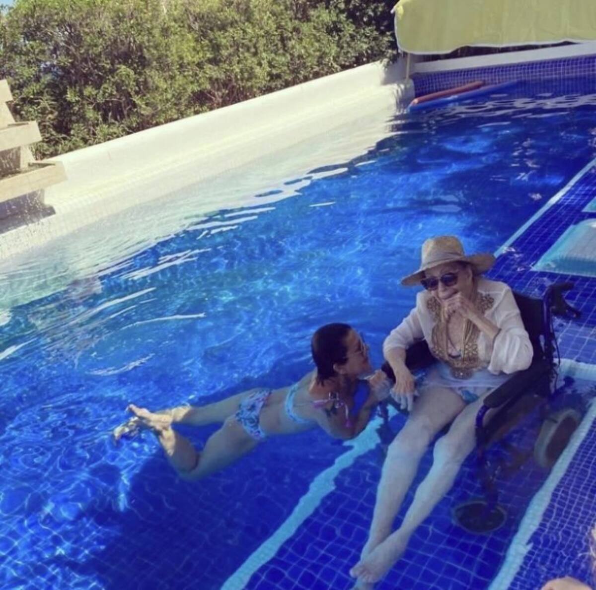 Desde hace algún tiempo Alejandra Guzmán ha comentado que en estos momentos lo único que desea es pasar el mayor tiempo posible con su madre Silvia Pinal, para poder disfrutarla al máximo, por lo que la rockera aprovecho el fin de semana para disfrutar de un relajante día en la alberca.