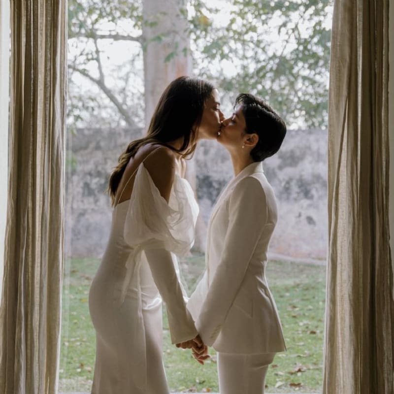 La partícipe de películas como “Aftershock”, “Knock Knock” y “Once Upon a Time in Hollywood”, fue quien dio el primer paso y posteó una foto junto a su esposa, ambas de blanco.