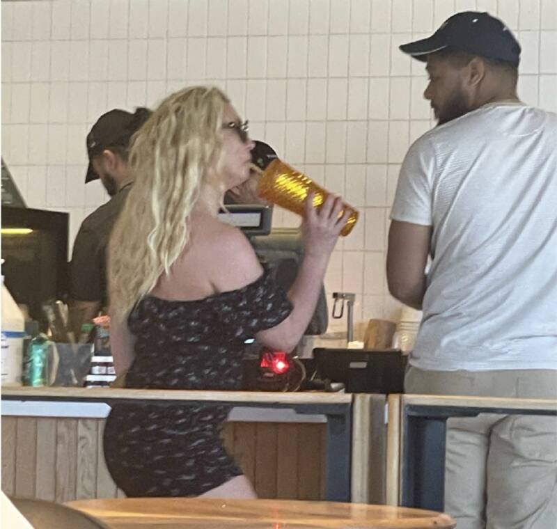 En imágenes obtenidas exclusivamente por Page Six, la estrella pop fue fotografiada en un Starbucks en la ciudad costera de Dorado, vistiendo un short negro con hombros descubiertos.