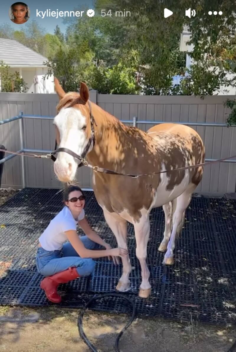 “Hola, hermana”, dijo Kylie Jenner en una de sus historias para después decir: “Te ves tan linda. ¿Esto es lo que haces los sábados? ¿Bañar tus caballos?”, dicho eso Kendall Jenner soltó la risa y procedió a esconderse detrás de Arizona.
