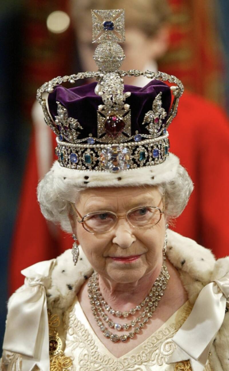 La Corona del Estado Imperial pesa más de 1 kg y está adornada con 2901 piedras preciosas, incluido el diamante Cullinan II, mientras que la Corona de San Eduardo pesa aún más con 2.23 kg.