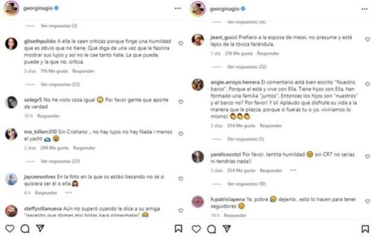Georgina Rodríguez, quien hace unas semanas estrenó la segunda temporada de su documental en Netflix, presumió en sus redes sociales el lujoso yate que tiene junto a su pareja Cristiano Ronaldo, pero lejos de recibir comentarios positivos, llovieron críticas.