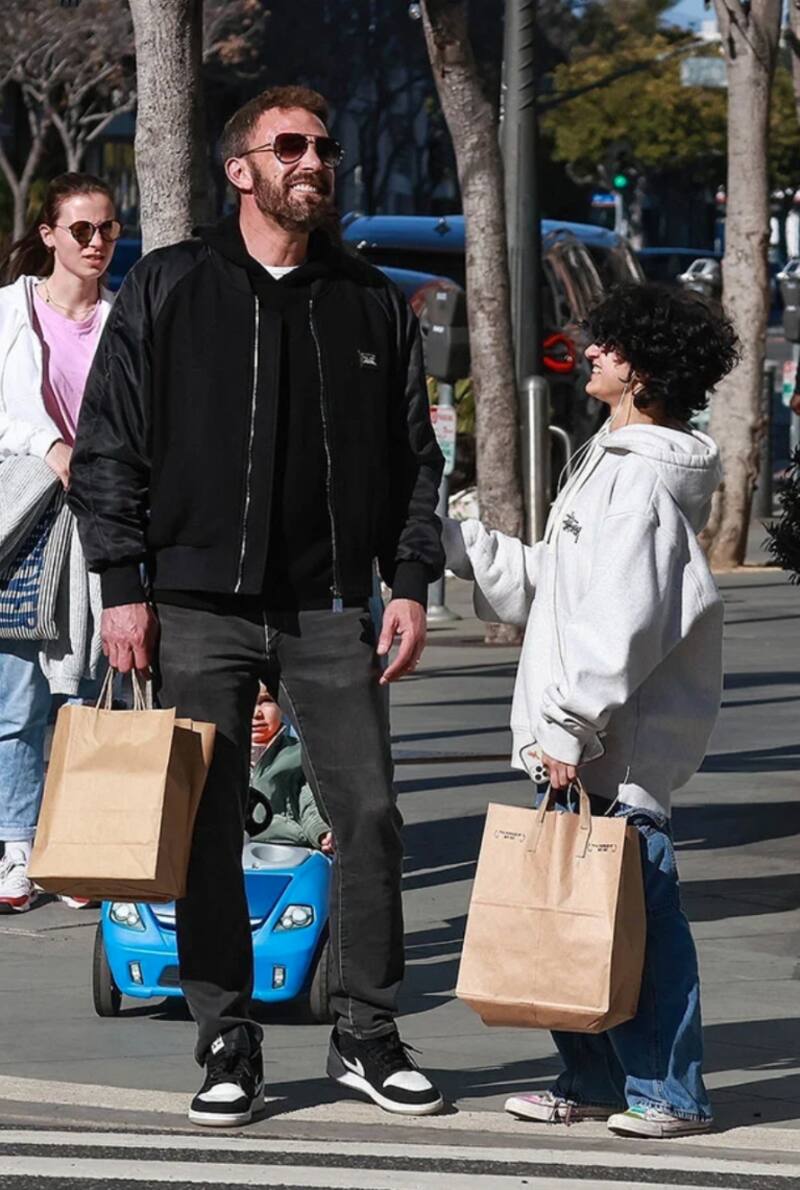 Ben Affleck como buen padrastro consintió a Emme Muñiz con una tarde de compras en Santa Monica, California, donde aparecieron cargando con un par de bolsas. Además, el actor y la adolescentes parecían estar de excelente humor, pues incluso se detuvieron a saludar a los paparazzis que los estaban siguiendo.
