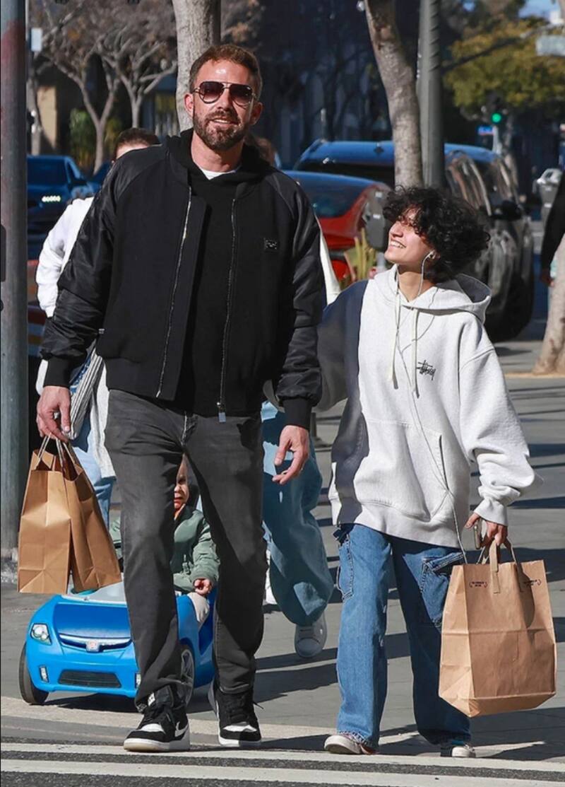 Ben Affleck como buen padrastro consintió a Emme Muñiz con una tarde de compras en Santa Monica, California, donde aparecieron cargando con un par de bolsas. Además, el actor y la adolescentes parecían estar de excelente humor, pues incluso se detuvieron a saludar a los paparazzis que los estaban siguiendo.