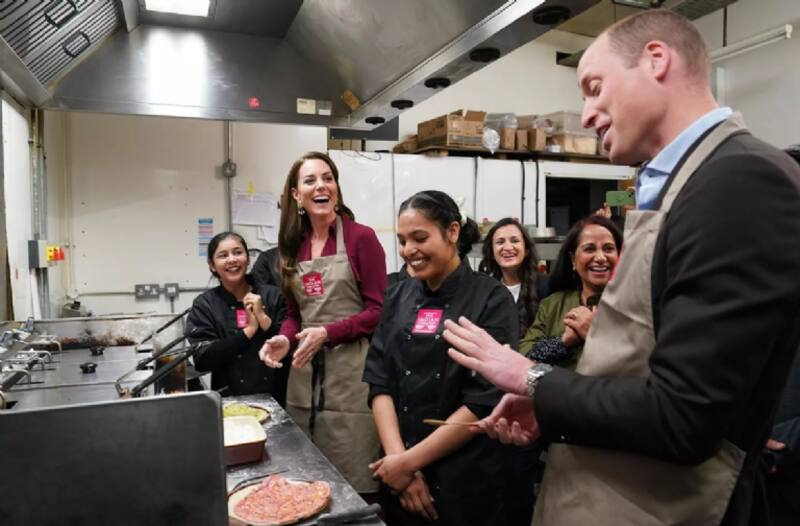 La pareja real inició su visita a Birmingham ayudando en un restaurante indio familiar, The Indian Streatery, dirigido por la familia Sharma, liderado por la jefa de cocina Meena (quien también es la mamá) y su equipo de mujeres. Kate Middleton y el príncipe William se reunieron con la familia y el personal, aprendiendo sobre la historia del restaurante y hablando con ex alumnas de el University College Birmingham que se han formado allí.