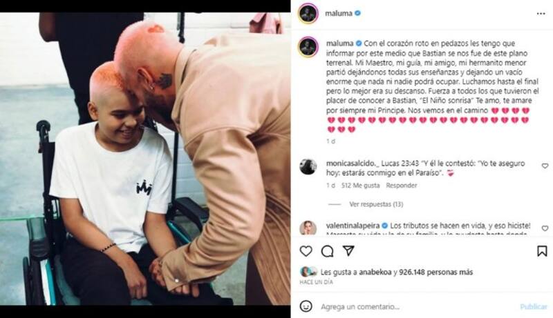 El cantante colombiano Maluma compartió con sus seguidores de redes sociales que su "hermanito menor", Bastián murió a causa del cáncer que padecía.