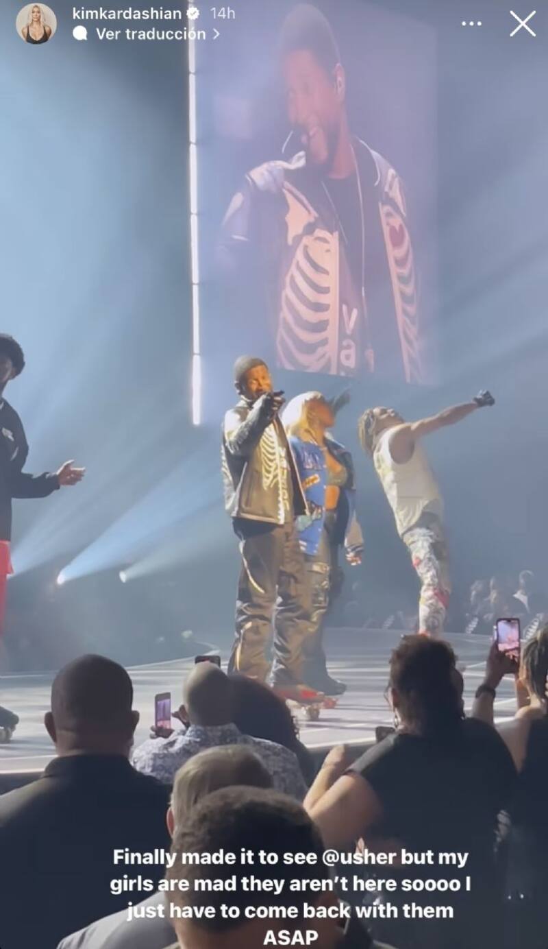“¡Finalmente llegué a ver a Usher! Pero mis amigas están enojadas porque no están aquí, así que tengo que volver con ellas lo más pronto posible”, escribió la socialité en una de sus publicaciones.