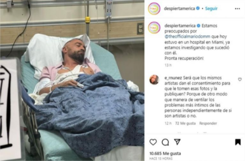 Mario Domm vocalista de Camila alarmó a sus millones de seguidores, tras divulgarse una imagen de él acostado en una cama de hospital y conectado a una serie de aparatos que monitorean los signos vitales, en un nosocomio de Miami, Florida.