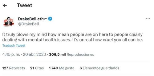 Además luego de una serie de conciertos en Ohio, el fin de semana, Drake Bell recurrió a sus redes sociales para hacer un llamado a sus detractores pidiendo detener los ataques en su contra , ya que algunos internautas insisten en llamarlo “pedófilo”.