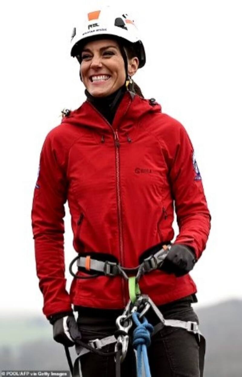 Kate Middleton, quien optó por un look deportivo y se puso la chaqueta The Mountain Equipment Kongur MRT, una gorra a juego y botas de montaña, tuvo la oportunidad de participar en actividades de capacitación como rappel, ejercicios de apoyo médico y una demostración de rescate de perros de búsqueda.