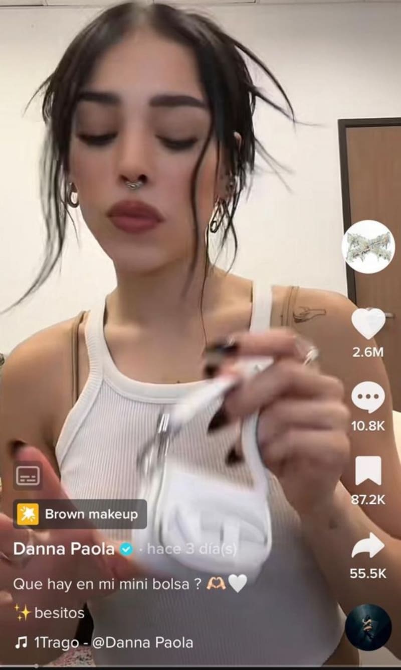 “Hoy voy a hacer un ‘qué hay en mi bolsa’ edición mini, porque ustedes saben que aquí no solamente cabe una pica fresa (golosina en México que es un pequeño dulce sabor a fresa, ácido y picante a la vez)”, dijo Danna en el video que subió a su red social.