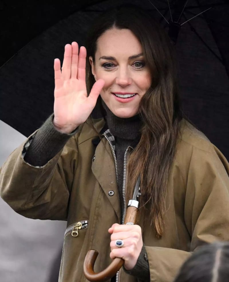 La tarde del pasado jueves Kate Middleton y el príncipe William se reunieron con simpatizantes que los esperaban en la calle a pesar de las lluvias. Mientras la princesa de Gales sostenía un paraguas se acercó a hablar con los presentes que no tardaron en notar el anillo que estaba luciendo.