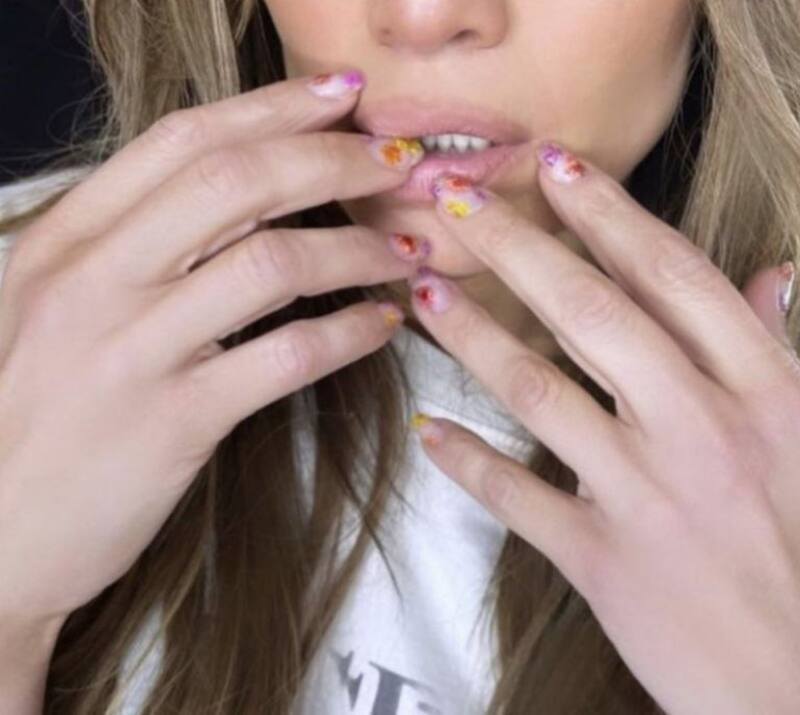 Tom Bachik su manicurista compartió que el nuevo nail art de JLo consistía en una base trasparente con flores encapsuladas en tono rosa, naranja, amarillo y rojo. Con este mani se despide del minimalismo que apenas hace unos días lucía, dándole rienda suelta a la explosión de colores, los detalles de la estación y las técnicas más bonitas para valerse de la naturaleza en esta estación del año.