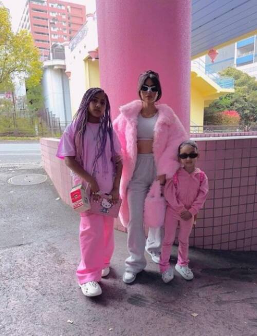 Chicago, la más pequeña, heredó todo el estilo de su mamá. Lució hermosa con un conjunto de pants y sudadera color rosa a la que le agregó una mochila que cargaba en los hombros. No podía faltar el pelo amarrado completamente y unos muy estilosos lentes obscuros.