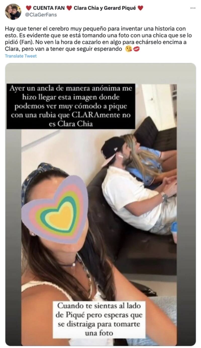 “Hay que tener el cerebro muy pequeño para inventar una historia con esto. Es evidente que se está tomando una foto con una chica que se lo pidió (Fan). No ven la hora de cazarlo en algo para echárselo encima a Clara, pero van a tener que seguir esperando”, escribió la cuenta.