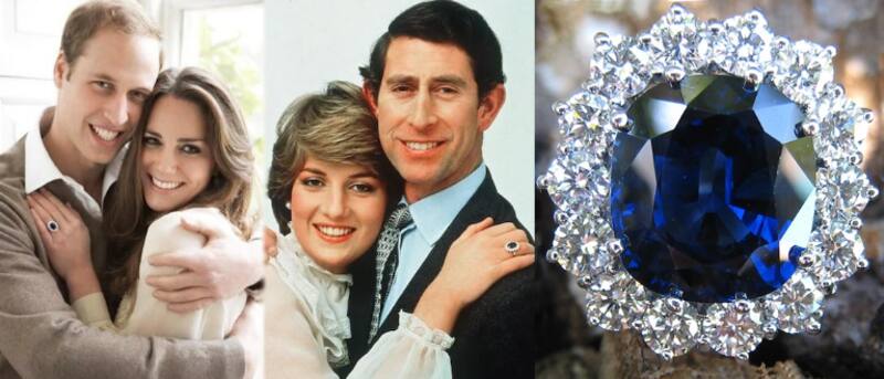 La princesa Diana eligió su anillo de compromiso de entre una bandeja de diamantes y zafiros que el joyero real Garrard le regaló en el castillo de Windsor en 1981. La futura esposa, de 19 años, se decidió por el anillo más grande que le ofrecían: un zafiro de Sri Lanka de 12 quilates rodeado de 18 diamantes y engastado en una banda de oro de 18 quilates, que costaba 28.500 libras, mismo que presumió después, cuando apareció junto al Príncipe Carlos para anunciar formalmente su compromiso, Diana lució un traje de Cojana que había sacado del perchero de Harrods durante un viaje de compras con su madre, y cuyo tono azul real resaltaba el color de la piedra elegida.