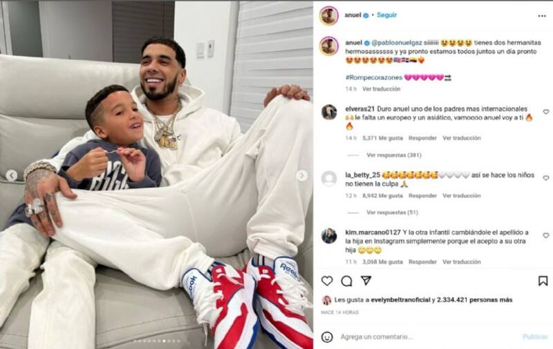 "Pablo, sí, tienes dos hermanitas hermosas. Ya pronto estaremos todos juntos, un día pronto", escribió el boricua junto a fotos en las que aparece con su hijo mayor, a quien tuvo con Astrid Cuevas.