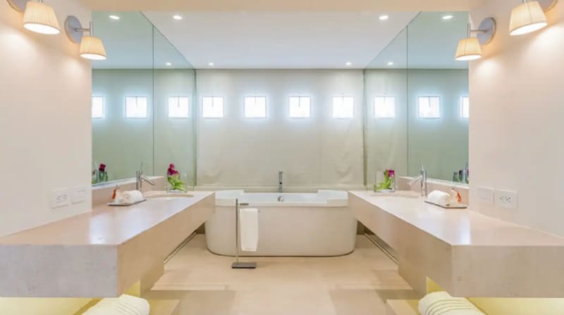 El resto de la casa cuenta con siete amplios baños, siendo el principal el más espacioso con una tina al fondo y dos lavamanos y cubierto casi en su totalidad por espejos.