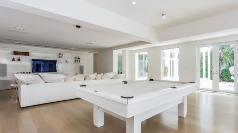 Para el área de entretenimiento Shakira agrego a su mansión una gran televisión y una mesa de billar para pasar el rato junto a sus hijos e invitados.