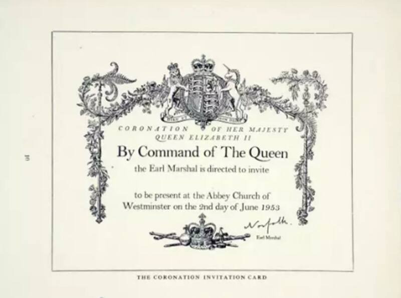Dos finas líneas doradas encierran las letras y el sello del duque de Norfolk. La organización de la Coronación (así como de los funerales, la apertura estatal del parlamento y otras ocasiones reales) recae en el conde Mariscal.