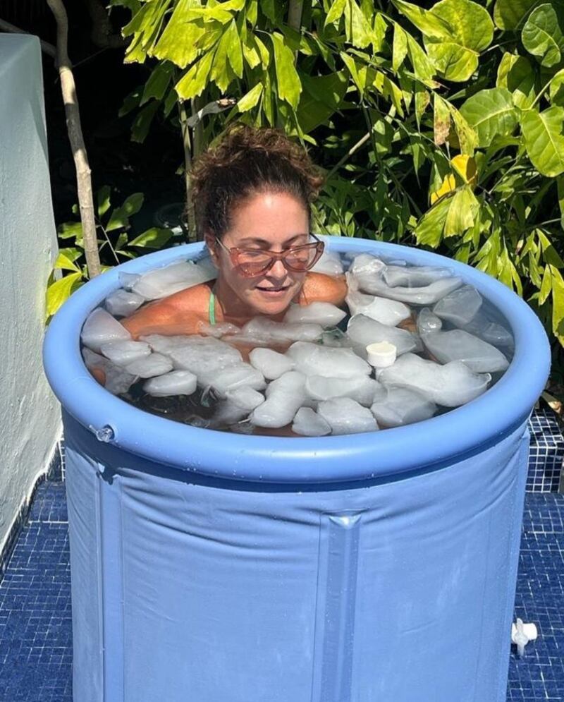 Esta vez, la cantante reveló uno de los grandes secretos que le permiten mantener una figura espectacular. A través de su cuenta de Instagram, compartió una foto en la que aparece dentro de una tina llena de hielos, una rutina que se ha vuelto tendencia entre los famosos.