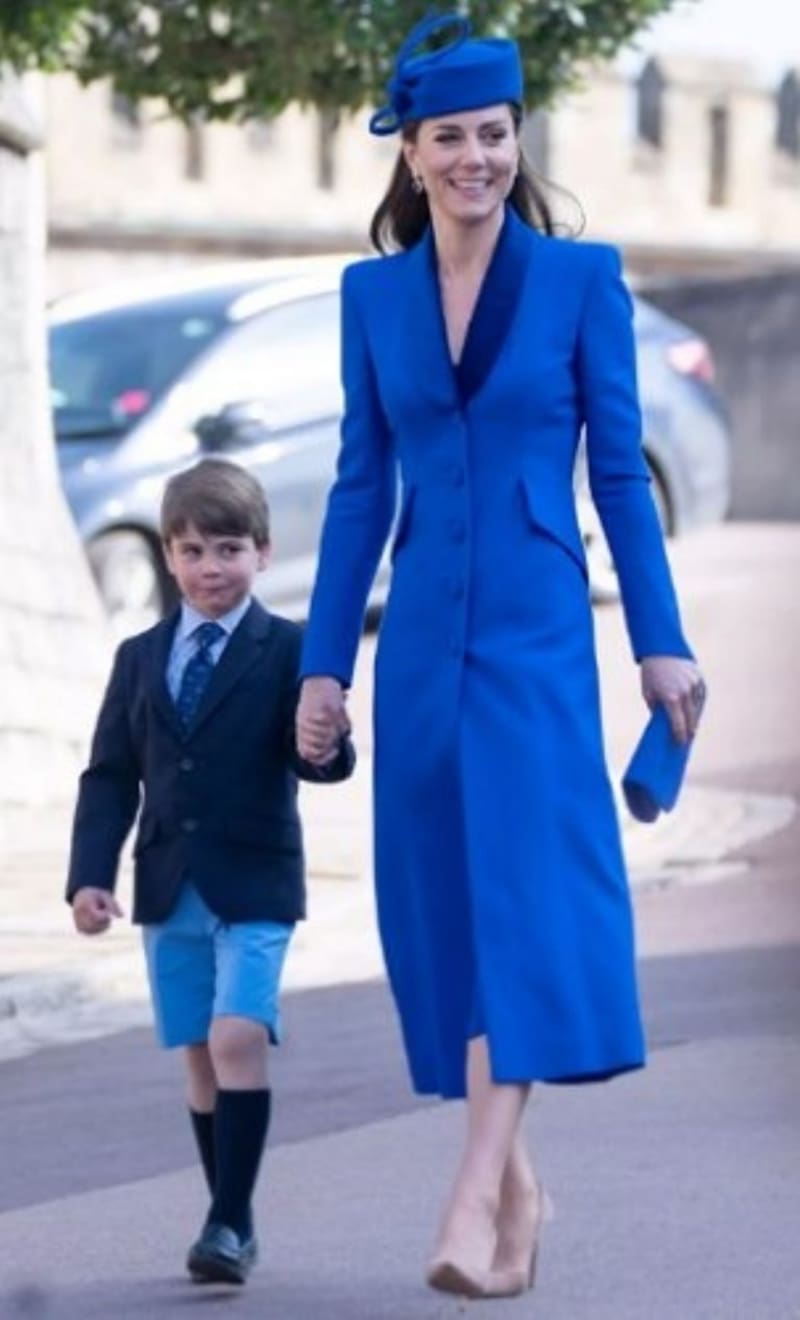 Louis, quien celebrará su quinto cumpleaños a finales de este mes, apareció junto a sus hermanos, el príncipe George, de nueve años, y la princesa Charlotte , de siete, mientras se unían a sus padres en el corto paseo entre el castillo de Windsor y la capilla de San Jorge.