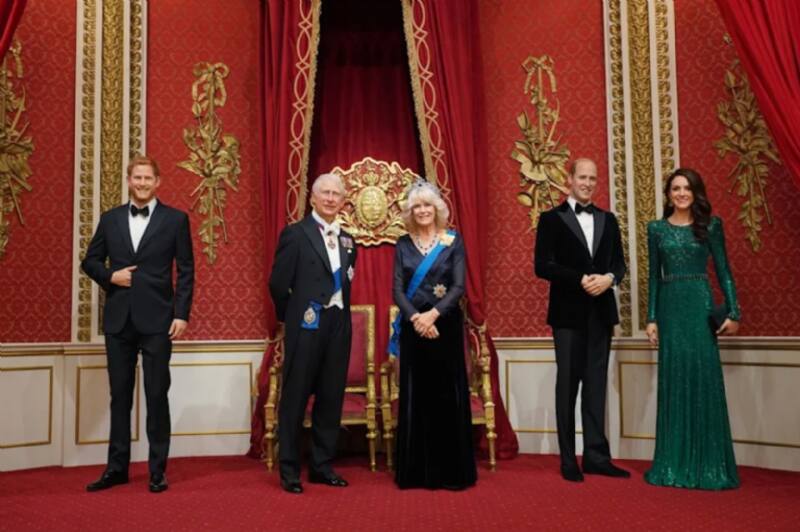 Esta semana el príncipe Harry se ha vuelto a reunir con la familia rea, pero definitivamente no como creíamos ya que fue su figura de cera la que abandonó a la figura de su esposa para aparecer nuevamente junto a las figuras del rey Carlos III, la reina consorte Camilla, el príncipe William y Kate Middleton.