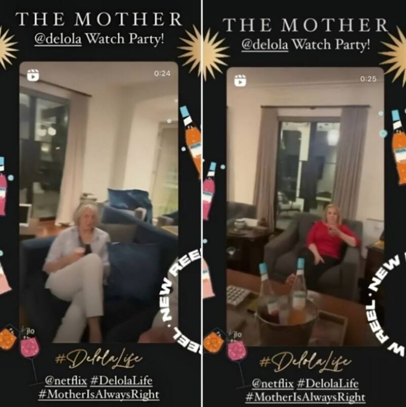 En el clip de apenas unos segundos, JLo muestra que está con “las mamás” y de un momento a otro enfoca que están viendo su nueva cinta, mientras compartía un par de cócteles de su nueva marca de bebidas Delola.