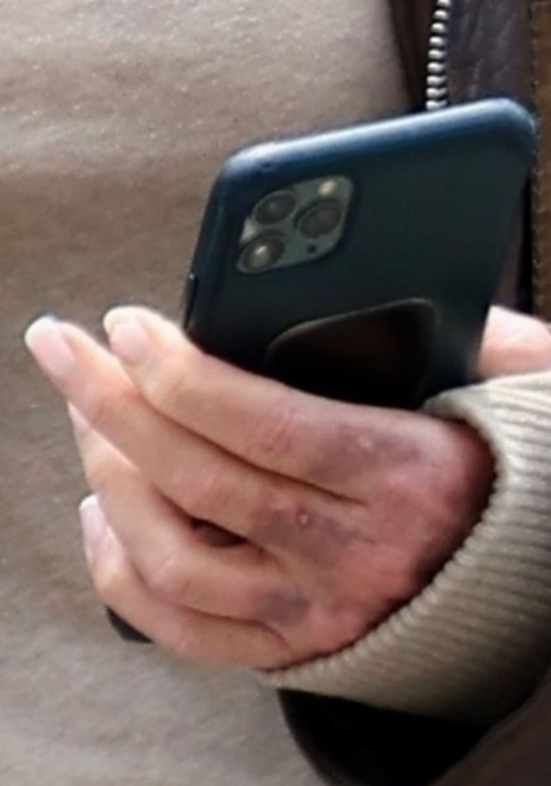 De acuerdo a Page Six, la mano izquierda y los nudillos del ícono de Hollywood estaban notablemente de color púrpura oscuro, mientras que una pequeña sección cerca de su oreja también parecía estar descolorida.