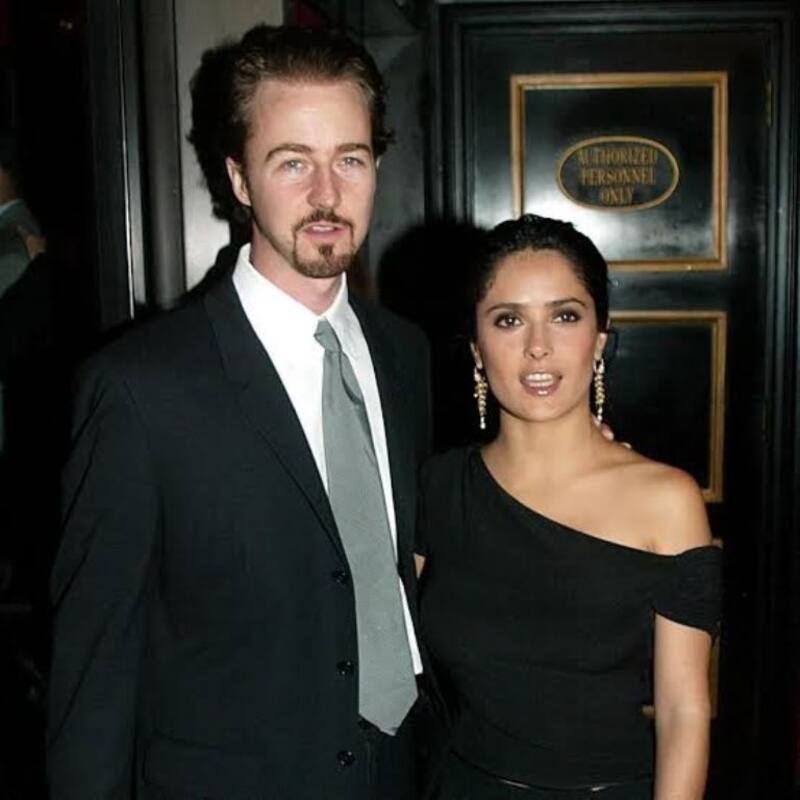 Salma Hayek y Edward Norton se conocieron en una visita al quiropráctico, comenzaron a salir en 1999 e incluso trabajaron juntos en la película “Frida”, pero su romance no duraría mucho y dieron fin a su relación en 2003.