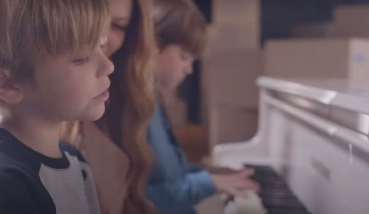 En la nueva grabación que ya registra casi un millón de reproducciones se puede ver a la colombiana sentada frente a su piano, acompañada de sus dos hijos, quienes se unen a ella para tocar.