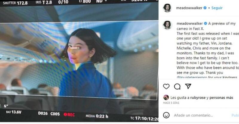 La hija de Paul Walker, Meadow tiene 24 años y acumula más de 3,8 millones de seguidores en Instagram y recientemente realizó un cameo en “Fast X” que compartió a través de una publicación en su cuenta de Instagram en la que podemos verla caracterizada para la película y dentro de un avión.