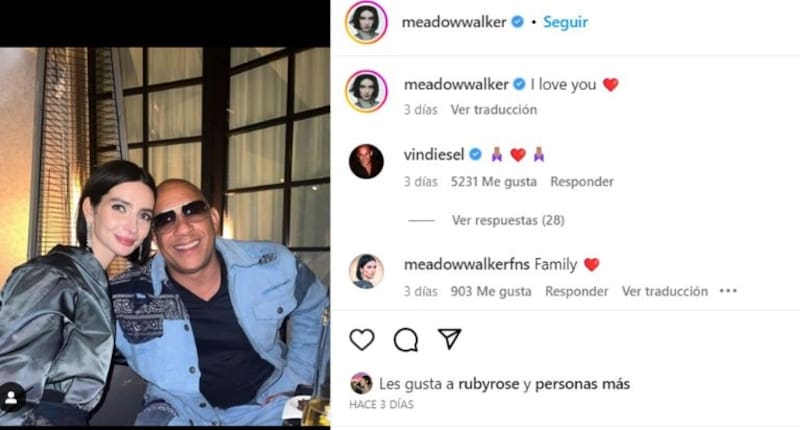 Por el momento, Meadow se muestra agradecida y emocionada por su debut como actriz en 'Fast X', además de estar muy ilusionada con poder honrar y participar en un proyecto que la vio crecer y que hizo disfrutar tanto a su padre. "Para mí, honestamente, esto trae la felicidad. Para mí esto es muy emocionante y él estaría asombrado de que esto esté sucediendo", ha asegurado.