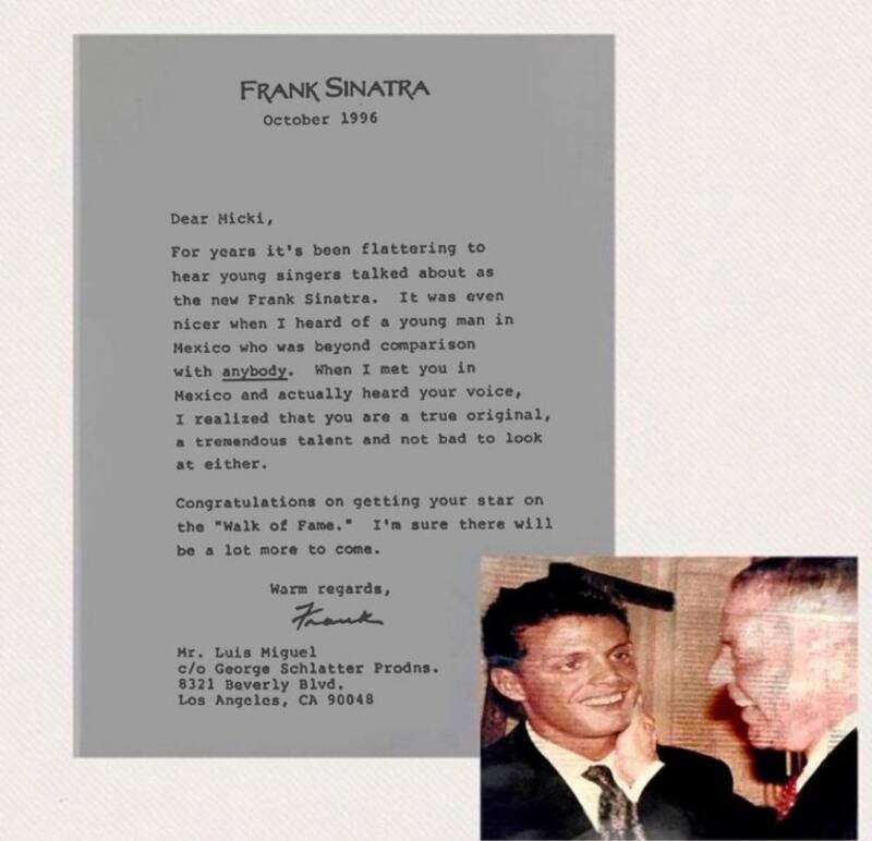 Luis Miguel sorprendió a sus seguidores de instagram al compartir una carta de Frank Sinatra, donde confiesa su sentir por él y lo describe como uno de los artistas más jóvenes y talentosos de esos momentos.