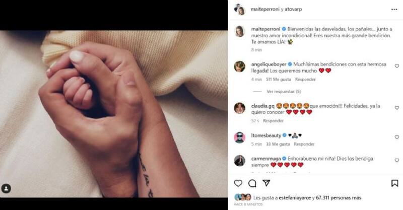 “Bienvenida tu mayor bendición”; “Enhorabuena mi niña! Dios los bendiga siempre”; “Muchísimas bendiciones con esta hermosa llegada! Los queremos mucho”; “Que bellezaaaaaa!! Felicidades y que sigan creciendo el amooooor en esa hermosa familia!! Los queremos”, fueron algunos de los comentarios que se pueden leer al pie de la publicación.