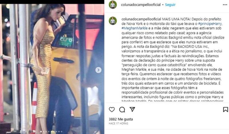 "En BACKGRID USA Inc., valoramos la transparencia y la ética en el periodismo, lo que incluye brindar respuestas justas y fácticas a los reclamos. Estamos al tanto de la declaración del Príncipe Harry sobre una supuesta 'persecución de autos casi catastrófica' que lo involucra a él, Meghan Markle y su madre, en la ciudad de Nueva York el martes por la noche", comenzó el comunicado.