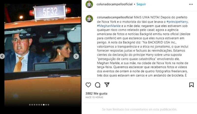 Asimismo, detallaron que Harry y Meghan cambiaron de auto "más de una vez" durante la persecución, según Sánchez. El duque y la duquesa de Sussex fueron vistos saliendo de la ceremonia de premiación en un automóvil negro antes de ser vistos en un taxi amarillo de Nueva York más tarde.