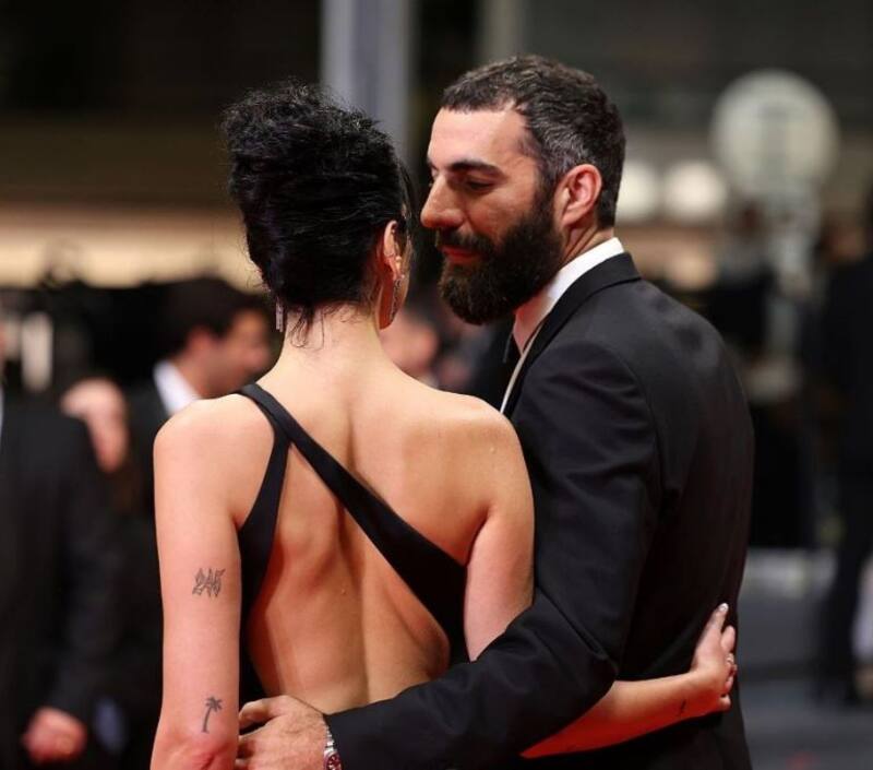 La pareja acudió al estreno de la cinta Omar La Fraise, de Elias Belkeddar. Para esta aparición en uno de los festivales de cine más importantes del año, la cantante británica usó un impactante vestido negro asimétrico de Hedi Slimane para Celine, el cual tenía una pronunciada abertura entre las piernas y un atrevido escote.