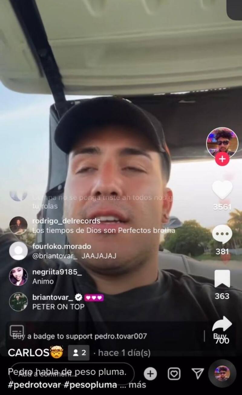 “Peso Pluma no lo puso para nada en su Instagram, número uno, o [dijo] ‘saludos para mi compa Pedro, que la canción fue un éxito’. Nada. Es lo que me agüita (decepciona). Pero ni modo… Vamos a seguir echándole ganas”, comentó Pedro Tovar en un live en TikTok.