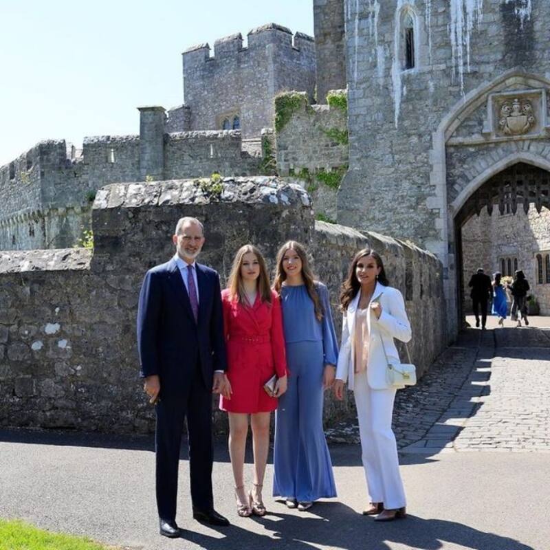 Debido a lo importante de este día en la vida de la futura reina, la Casa Real compartió dos imágenes del acontecimiento. Una con la protagonista posando junto a sus padres y la infanta Sofía frente a la fachada del castillo de St. Donat's, y otra de los cuatro juntos y abrazados, en una actitud más relajada.