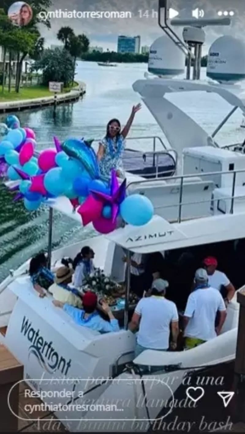 Acompañada de la mano de su hija Alaïa, quien también sorprendió a su mami con varios regalitos y felicitaciones, llegó al destino donde la esperaban sus seres queridos. Fue entonces que se quitó la venda de los ojos y pudo ver que estaba a bordo de un barco que la llevaría, junto con todos sus amigos, a un paradisiaco destino: ¡Las Bahamas!