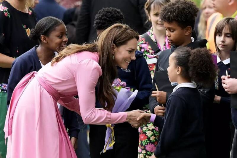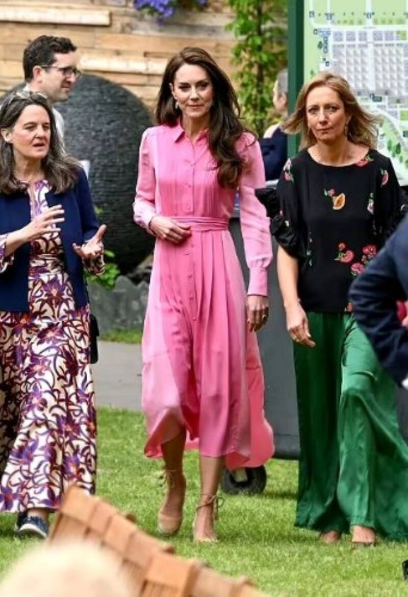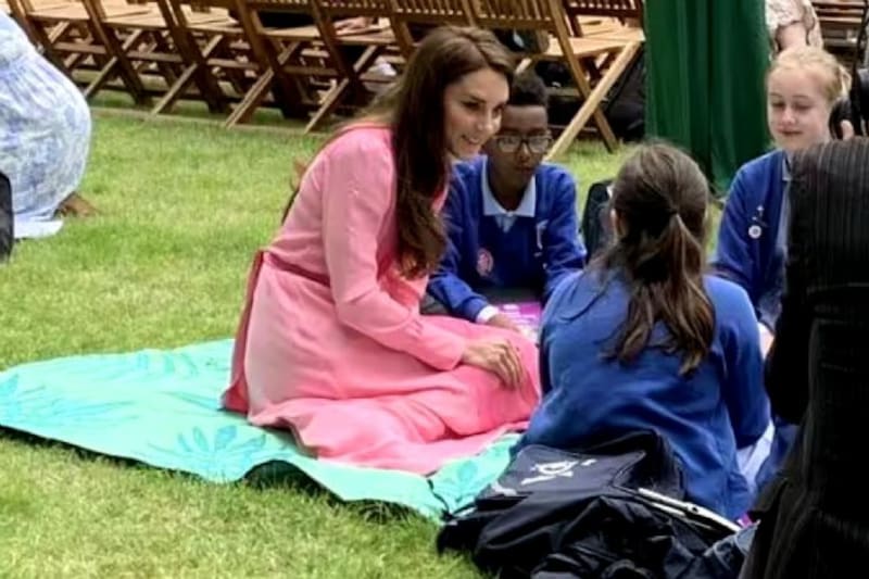 Kate Middleton, quien cautivó con una vestido largo rosa, hizo una aparición sorpresa en el Chelsea Flower Show, donde se unió a los alumnos de 10  escuelas británicas que participaron en una campaña de Jardinería Escolar en un picnic.