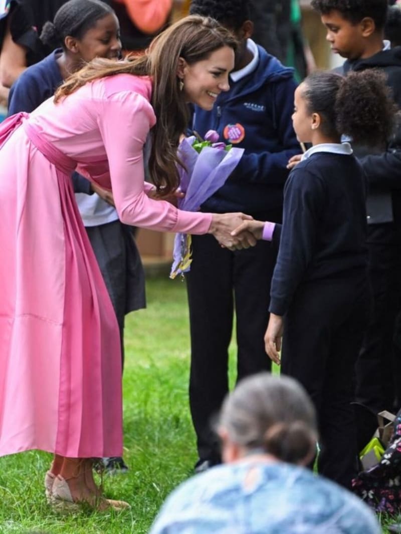 A la princesa de Gales se le ve muy sonriente y muy cercana a las personas, quienes siempre la reciben con mucho cariño. El vestido que eligió para la ocasión ya lo había usado en el 2021 al encontrarse con Mila Sneddon, una niña enferma de cáncer, quien ya ha superado la ha leucemia.