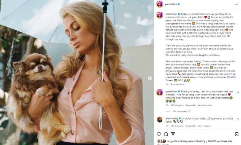 Con un extenso mensaje, la multimillonaria se despidió de quien fuera su compañera de vida por 23 años. Se trata de una de sus mascotas, una perra de la raza chihuahua de nombre Harajuku Bitch.