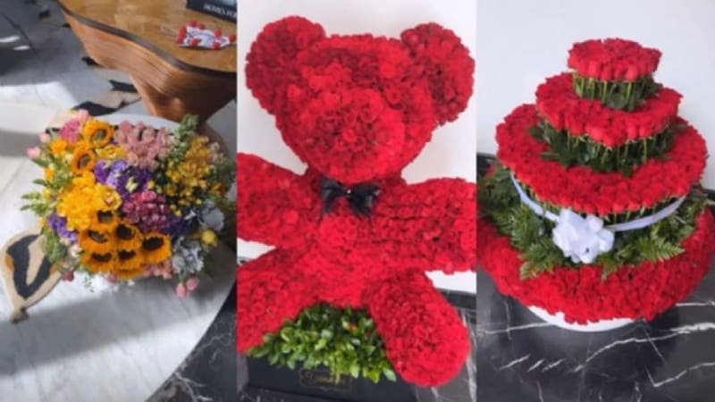 Fueron alrededor de 30 arreglos florares con los que Canelo sorprendió a Fernanda. La tapatía no desaprovechó el momento para presumirles a todos sus seguidores en redes sociales lo que su esposo le obsequió.