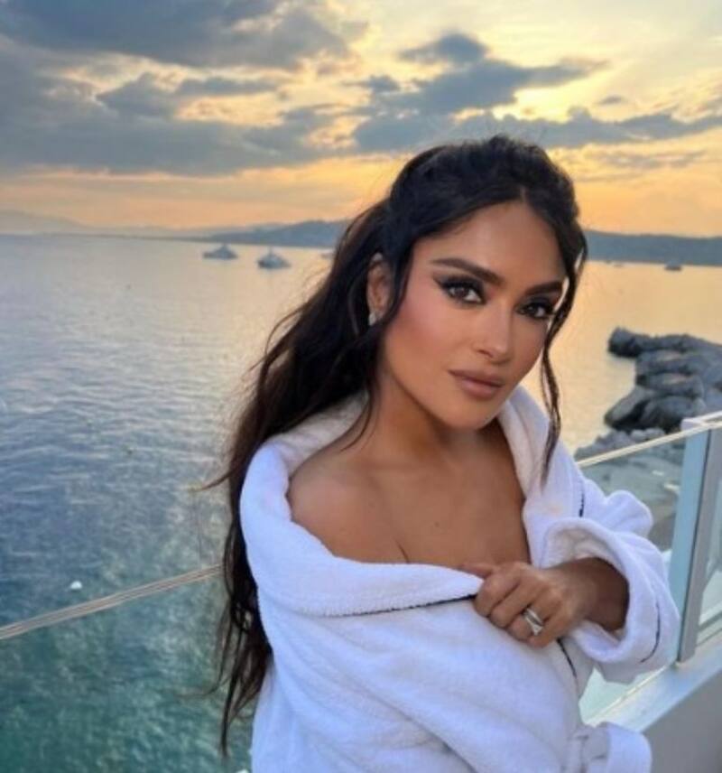 Salma Hayek es considerada como una de las actrices más aclamadas de México, quien recientemente generó un sinfín de elogios al compartir una serie de fotografías donde aparece con tan solo una bata blanca en un balcón disfrutando de un atardecer desde la playa.
